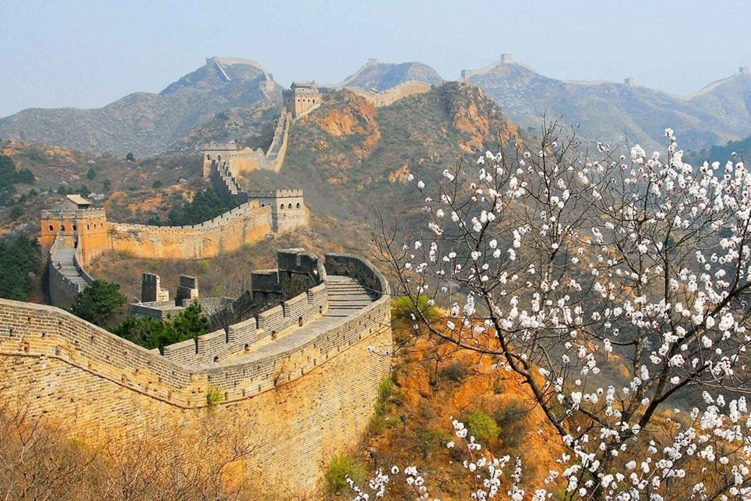 Randonnée sur la section Jinshanling de la Grande Muraille, célèbre auprès des randonneurs et des photographes, puis téléphérique jusqu'à la Grande Muraille de Simatai pour profiter d'un magnifique coucher de soleil avant d'explorer la ville d'eau de Gubei le soir venu.
