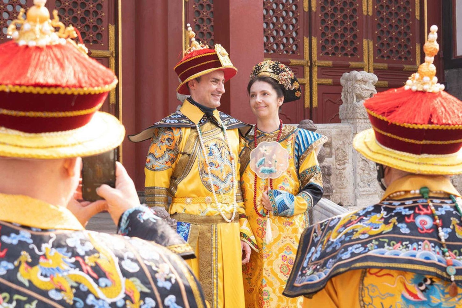 Continue your exploration of the Forbidden City in your elegant attire, walking through symbolic sites such as the Meridian Gate, the Hall of Supreme Harmony, and the Imperial Garden. Along the way, your guide will reveal stories of imperial life, hidden rituals, and the daily routines of emperors.