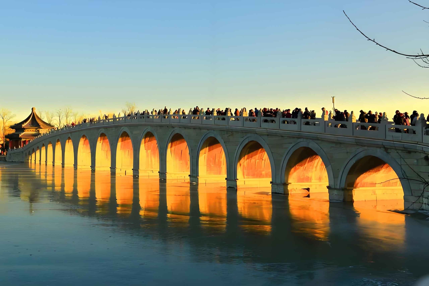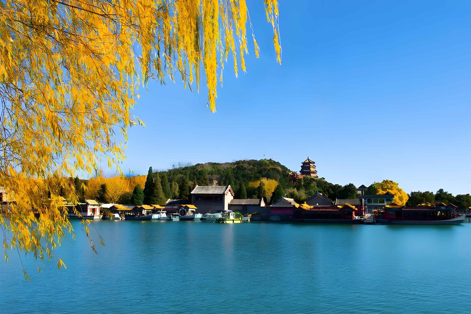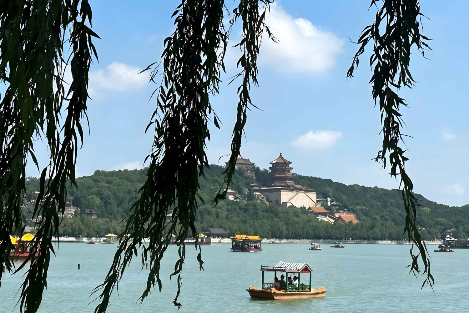 Därefter fortsätter vi till Sommarpalatset, Kinas kungliga trädgård under Qingdynastin, tidigare känt som Trädgården med klara krusningar, som byggdes som en stor naturlig landskapsträdgård med Kunming-sjön och Wanshou-berget som bas, med Hangzhous West Lake som förebild och med inspiration från några av designteknikerna och stämningarna i trädgårdarna söder om Yangtzefloden.