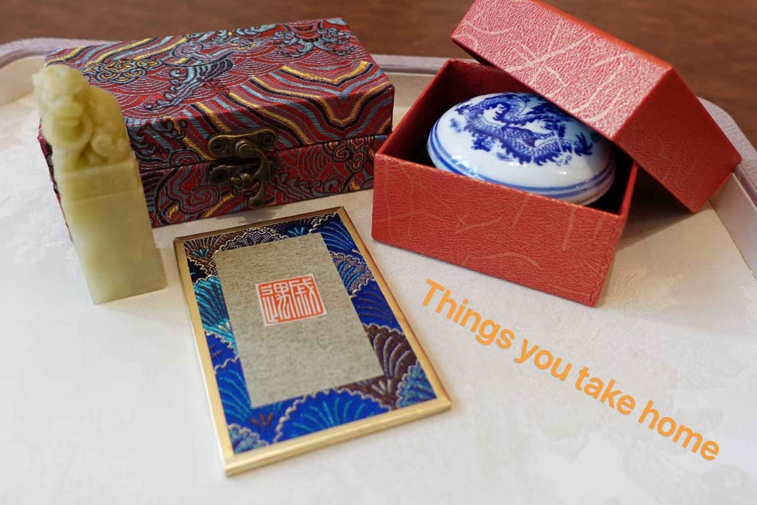 Allt material tillhandahålls, inklusive en sten för din stämpel, en sidenbelagd stämpelbehållare och röd pasta. Ta med dig din färdiga stämpel hem som en unik souvenir. En översättare kommer att vara med dig under hela sessionen för att säkerställa en smidig och trevlig upplevelse.